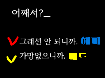 이후 화면전환없이 아오바에게서 (좋아) 대사가 흘러나오며 배드엔딩으로